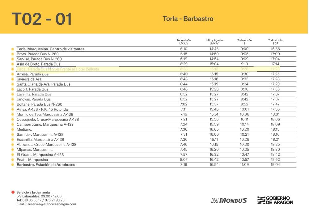 Desde el lunes 16 de febrero comienzan las nuevas Líneas regulares de Transporte Público en Aragón de Sobrarbe y Ribagorza.